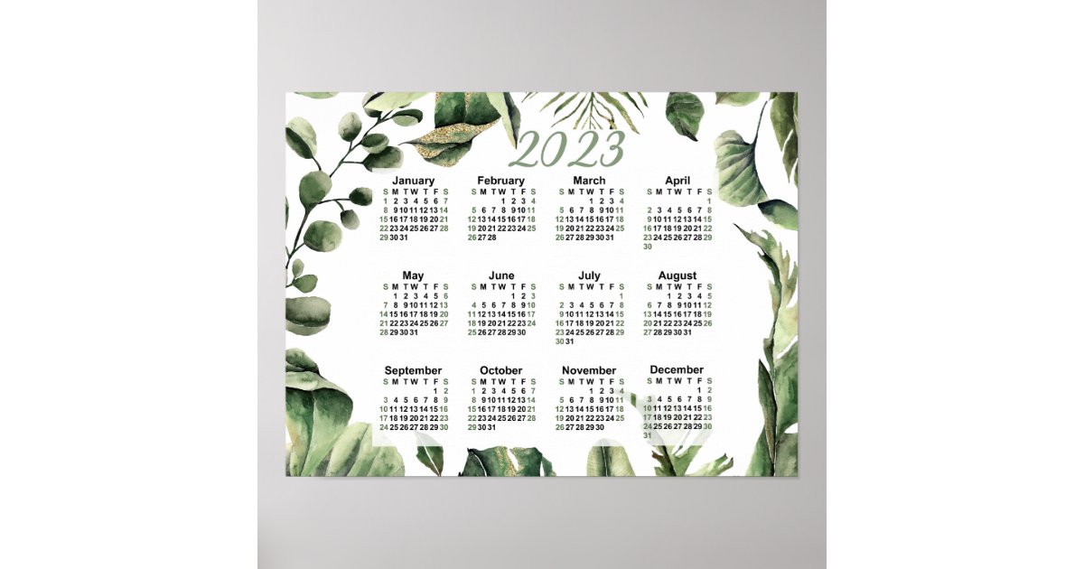 2023 Calendar, Watercolor Yearly Calendar, Sunday Poster | Zazzle