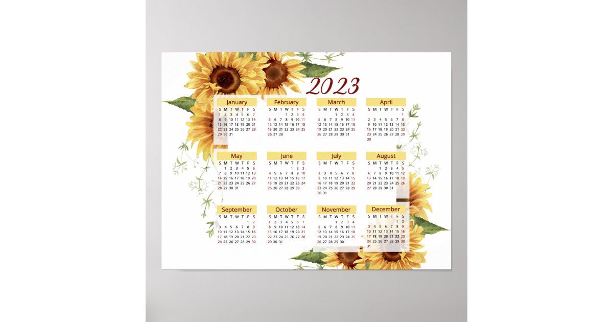 Sunflowers Calendar, 2023 Calendar, Yearly Poster | Zazzle