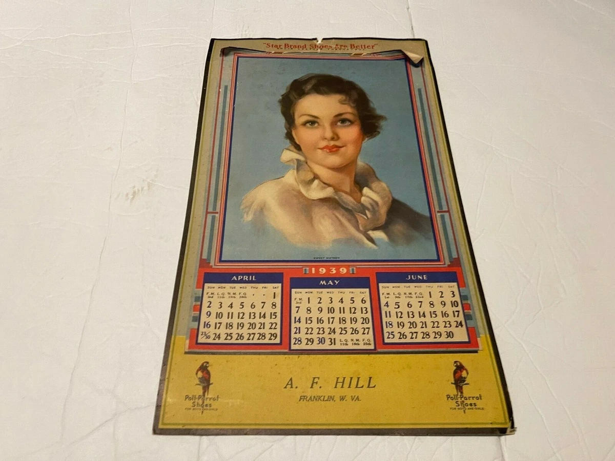 Vintage A.F. HILL 1939 Wall Calendar, franklin west virginia, POLL